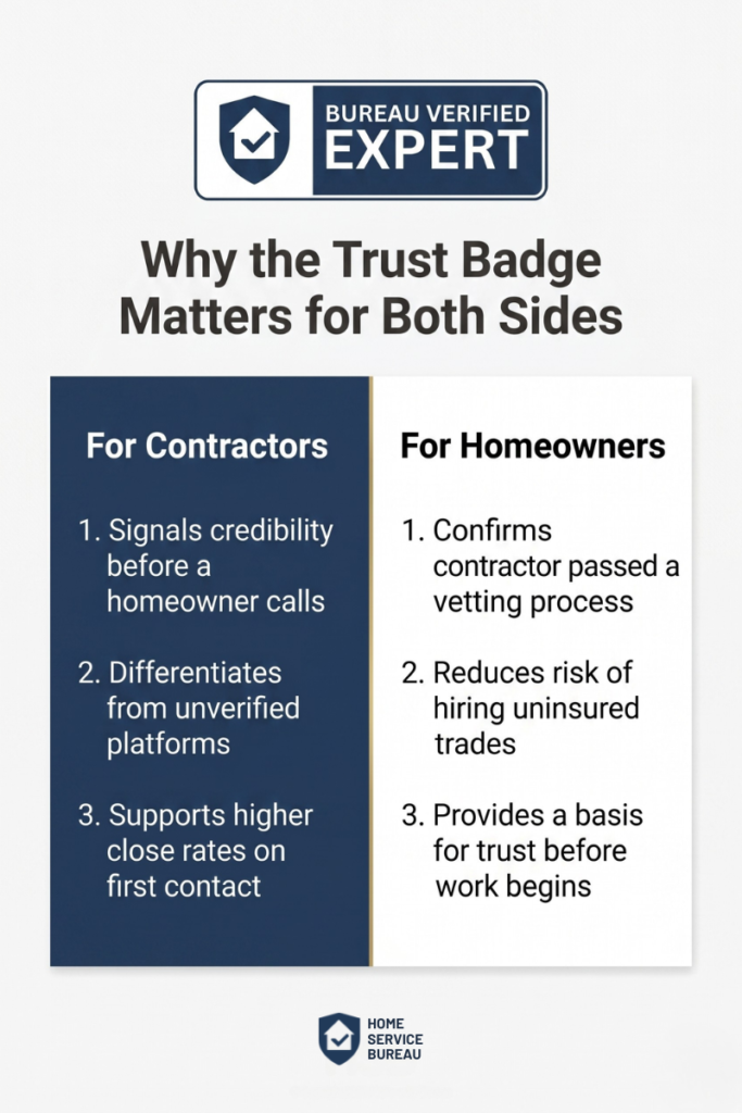 Contractors, this badge is something that no amount of advertising could duplicate. It creates trust before even a single conversation occurs.